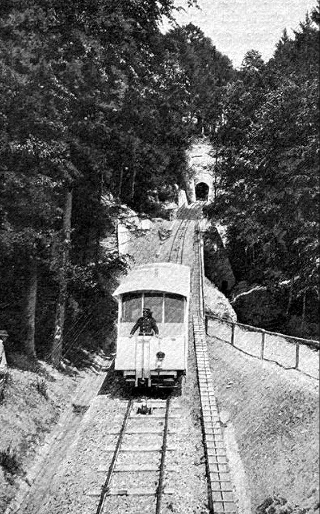 Das Grand Hotel Sonnenberg wurde ab 1902 durch diese Standseilbahn erschlossen. Das Tram aus Luzern wendete direkt in der Talstation in Kriens.