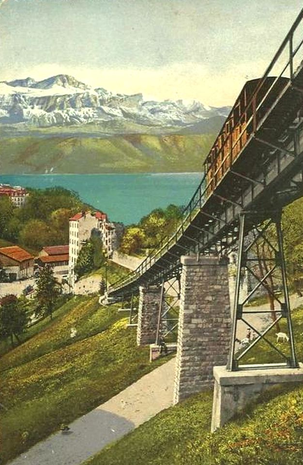 Als Ausflugsbahn auf die Anhöhe mit dem Wald von Sauvabelin fuhr diese klassische Standseilbahn erstmals am 18. Oktober 1899.