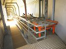 In dieser Passarelle war ein Schrägaufzug für den Transport von Normpaletten in Betrieb.