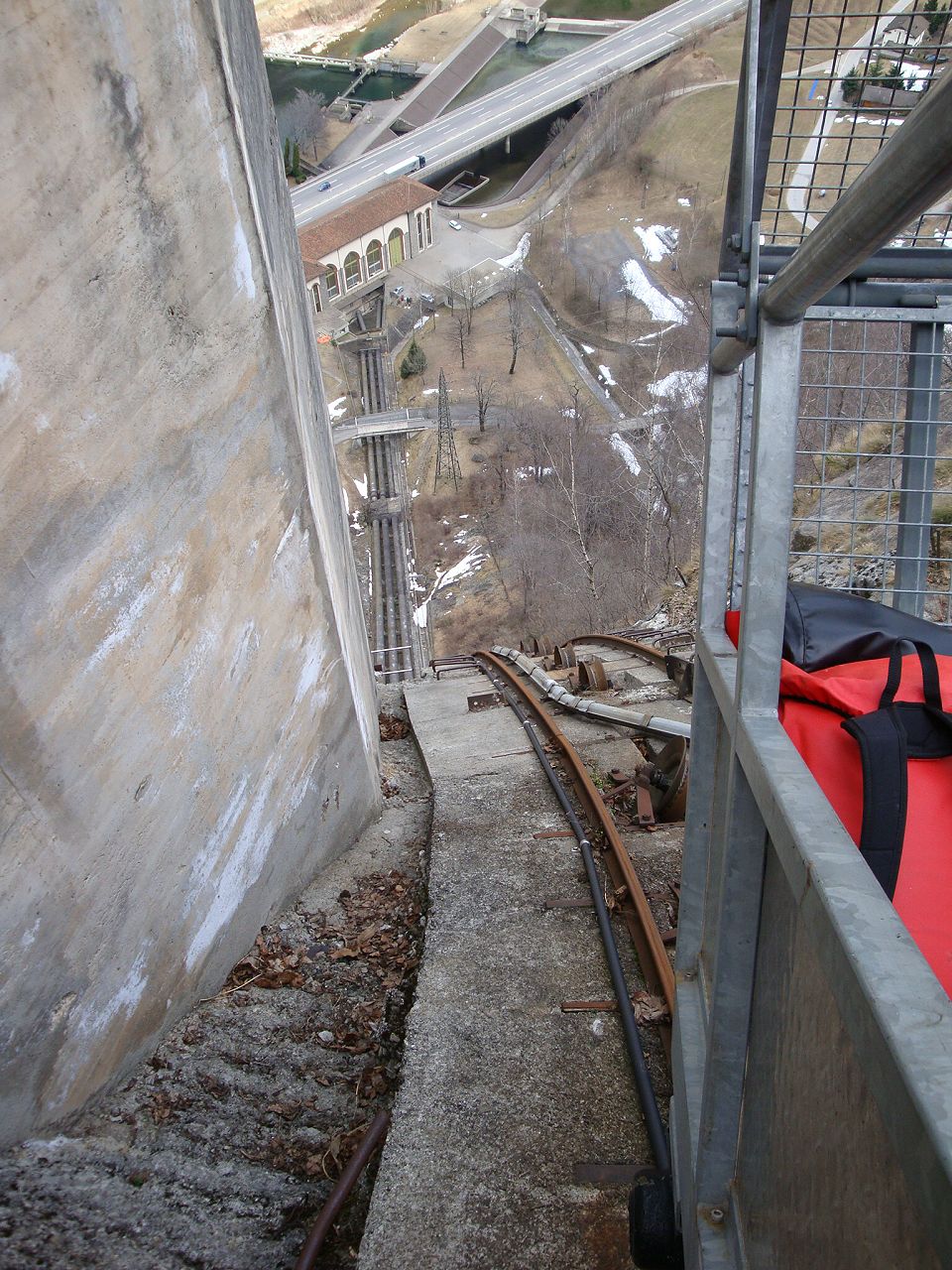 Der Schrägaufzug beim Kraftwerk Piottino in Nivo (Lavorgo) ist die steilste Standseilbahn der Schweiz. Die spektakuläre Windenbahn erreicht eine Steigung von 58,80 Grad (165,12 %). Auf Platz 2 folgt die Anlage 1354.01 Montcherand mit 56,92 Grad Steigung (153,50 %). Zum Vergleich: Die Stoosbahn erreicht "nur" 47,73 Grad Steigung (110 %).