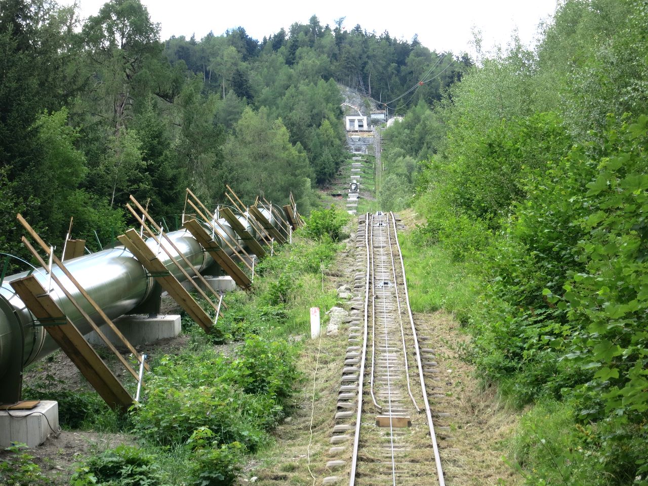 Von 1931 - 2015 ging die Bahn vom Talboden beim Kraftwerk hinauf bis zum Wasserschloss. Diese alte Windenbahn war bis im Jahr 2015 in Betrieb.