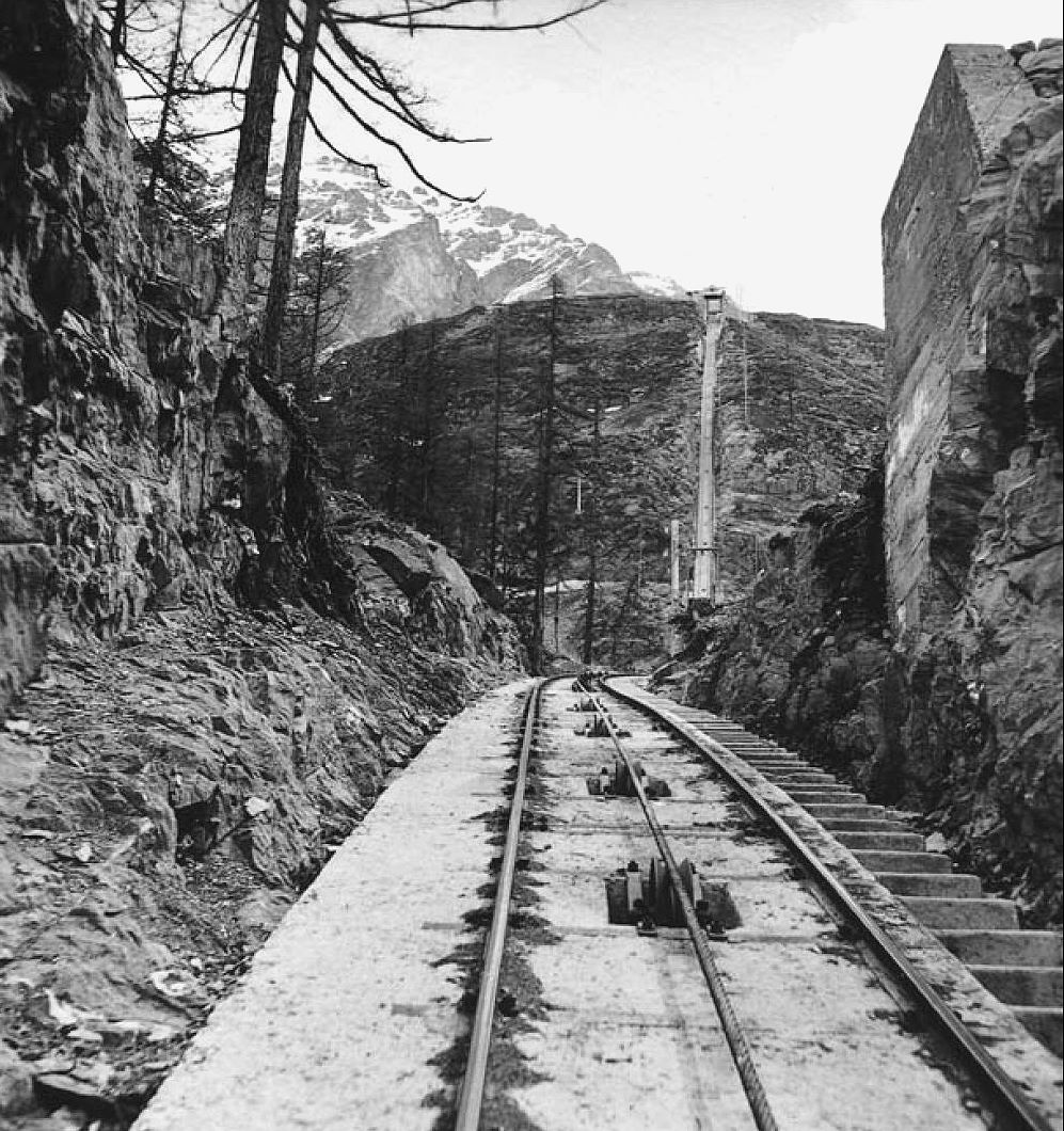 Entlang dieser Druckleitung waren nacheinander insgesamt 3 Windenbahnen in Betrieb. Die Wagen konnten bei den Zwischenstationen jeweils ausgewechselt und an die Seilwinde der nächstoberen Sektion angehängt werden: