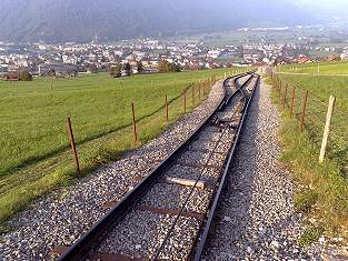 Stanserhornbahn 1. Sektion Ausweiche - Foto Markus Seitz Archiv standseilbahnen.chStanserhorn Stanserhornbahn