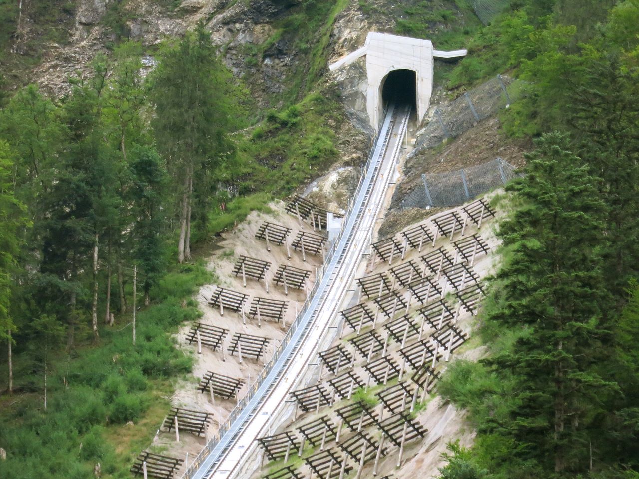 Steilste Standseilbahn der Welt mit Ausweiche und 2 Wagen