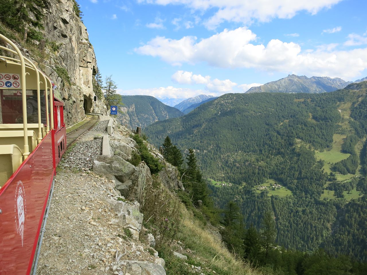 Um den Höhenunterschied von 148 Metern zu überwinden, war ab 1977 zwischen der Staumauerbasis und der Staumauerkrone der einzige öffentliche Zahnrad-Monorack der Schweiz in Betrieb. Dieser Selbstfahrer von Habegger mit Dieselantrieb am Fahrzeug (keine Standseilbahn) war ein ganz besonderes Beförderungsmittel, das bis heute in den Weinbergen im Einsatz ist.