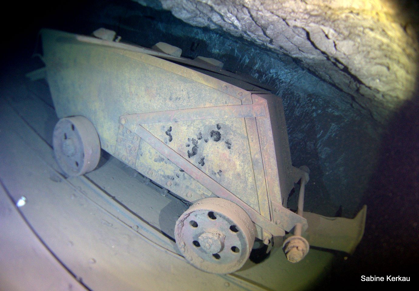Am 3. Mai 1966 wurde das Bergwerk geschlossen und sofort mit den Demontagearbeiten begonnen. Dabei wurden die Pumpenanlage und die Trafostation demontiert. Aus diesem Grund stieg das Wasser. Ende Mai 1966 erreichte das Wasser bereits 341 Meter über Meer. Das obere Bild zeigt die Situation bei der Bergstation beim Basisbahnhof auf 490 müM. Die tiefer liegenden Stollen sind überflutet und nicht mehr zugänglich. Die ganzen 180 Höhenmeter dieser Standseilbahn liegen heute unter Wasser !