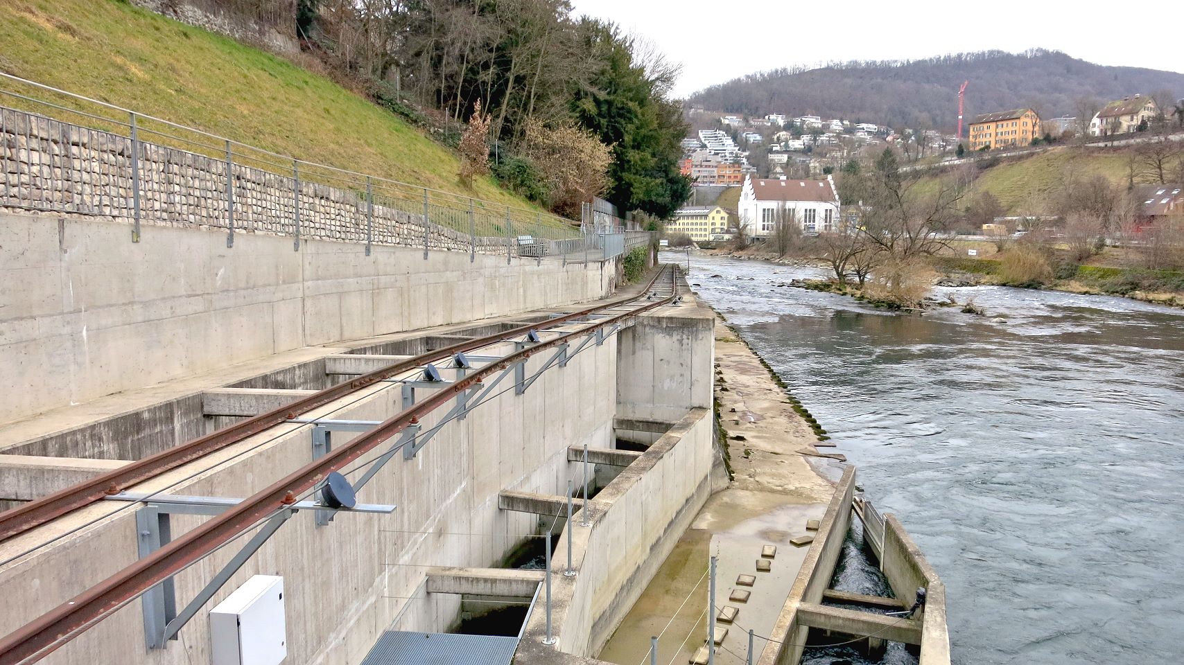 Diese Boottransportanlage an der Limmat überwindet die Staustufe beim Wasserkraftwerk Aue in Baden.