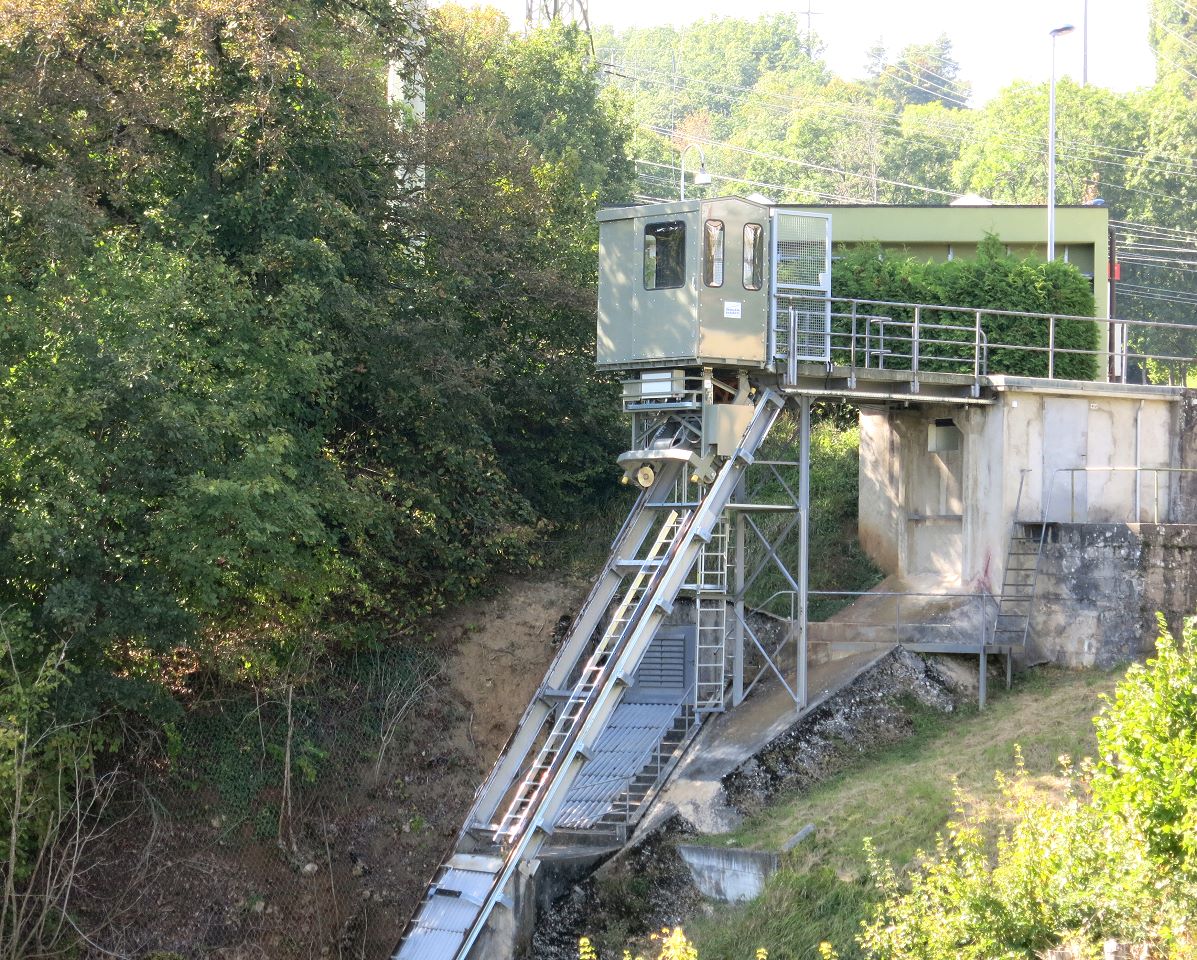 Mit 56,92 Grad Steigung (153,50 %) ist der Schrägaufzug des Kraftwerks Montcherand nach Piottino die steilste Anlage in der Schweiz. Seit 1949 fuhr die offene Plattform ohne Fangbremse (!) zwischen dem Kraftwerk und dem Bürogebäude auf und ab.