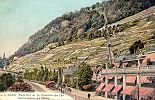Seit 1883 verbindet eine Standseilbahn Territet mit Glion. Die gesamte Anlage wurde von Niklaus Riggenbach projektiert.