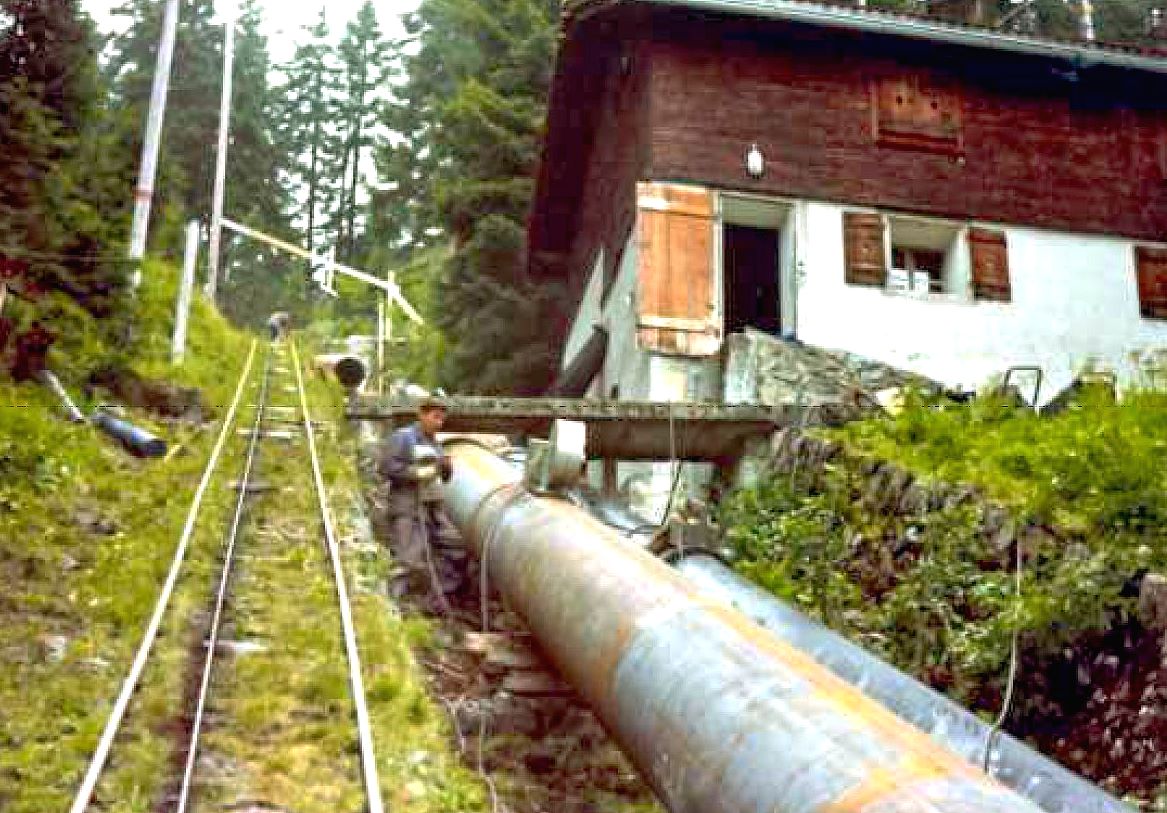 Die neue Druckleitung wurde im Jahr 1969 installiert. Die alte, schwarze Druckleitung wird seit 1969 nicht mehr verwendet, sondern dient als Kanal für Kabel und Leitungen.